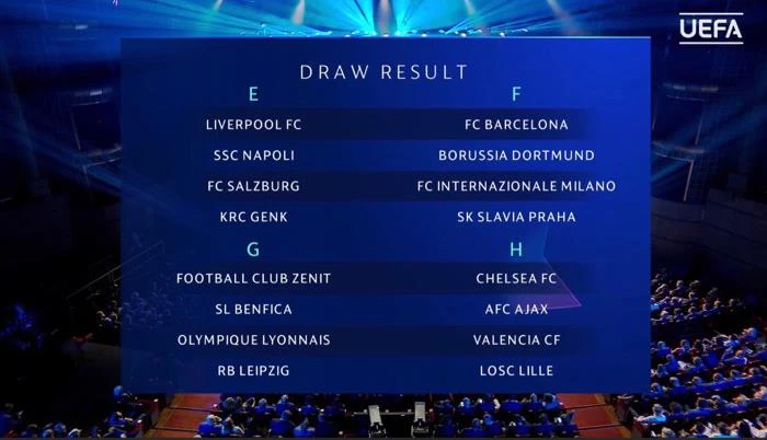 Kết quả bốc thăm chia bảng Champions League.