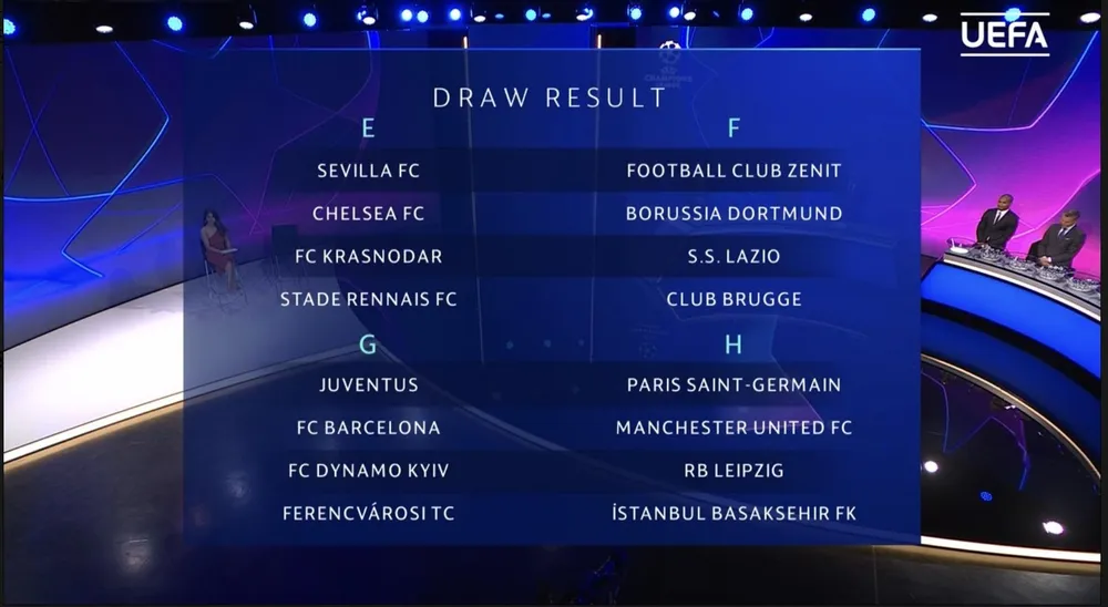 Như vậy, Champions League năm nay đã xuất hiện bảng tử thần, đó là bảng B, bảng D và đặc biệt là bảng H. Bảng H xuất hiện hai đội từng đối đầu ở bán kết Champions League mùa trước là PSG và RB Leipzig, hai đối thủ còn lại là đội bóng hùng mạnh nước Anh MU và İstanbul Başakşehir.