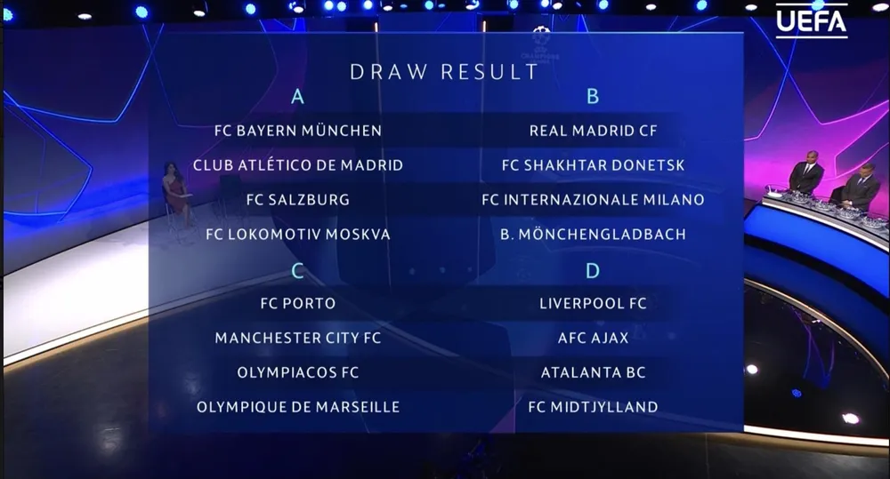 Liverpool cũng gặp khó khi nằm ở bảng D với Ajax, Atalanta, đội vào tứ kết mùa trước và Midtjylland. Bảng B của Real Madrid cũng khó nhằn khi quy tụ hai đội vào bán kết Europa League mùa trước gồm Shakhtar Donetsk và Inter Milan, đội còn lại là đại diện nước Đức Borussia Mönchengladbach.