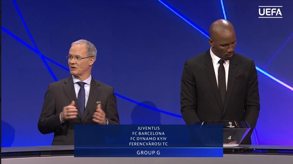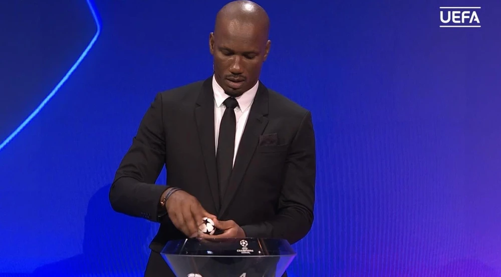 Cựu sao Chelsea, Didier Drogba là khách mời tham gia lễ bốc thăm Champions League.