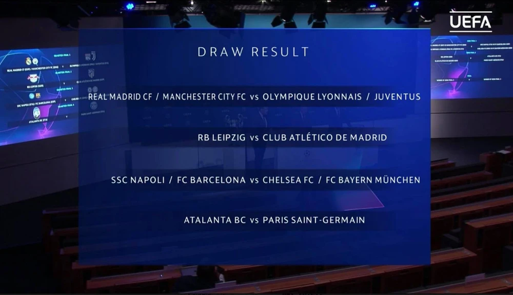 Hiện tại Champions League mới xác định được 4 đội vào tứ kết gồm Atalanta, Atletico Madrid, Leipzig và PSG. 4 cặp đấu còn lại là Chelsea - Bayern Munich, Napoli – Barcelona, Real Madrid - Manchester City, Lyon – Juventus sẽ thi đấu trận lượt về vào ngày 7 và 8-8 nhằm xác định 4 CLB còn lại vào tứ kết.