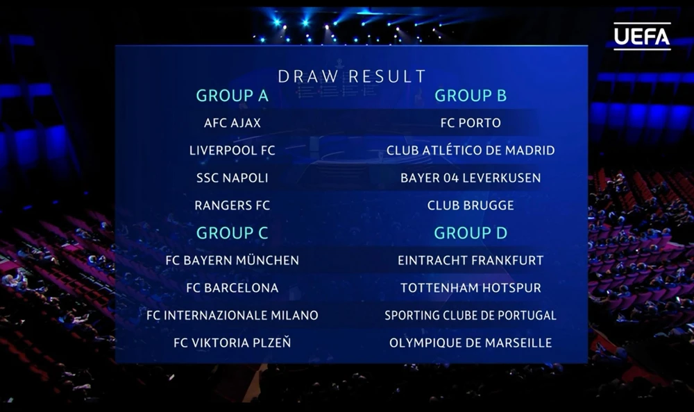 Hai đội bóng Anh là Man City cùng Liverpool cũng rơi vào bảng đấu khó. Liverpool gặp Ajax, Napoli và Rangers ở bảng A, còn Man City đối đầu Sevilla, Borussia Dortmund và FC Copenhagen ở bảng G. Bảng H cũng rất khó chơi với sự góp mặt của PSG, Juventus và Maccabi Haifa.