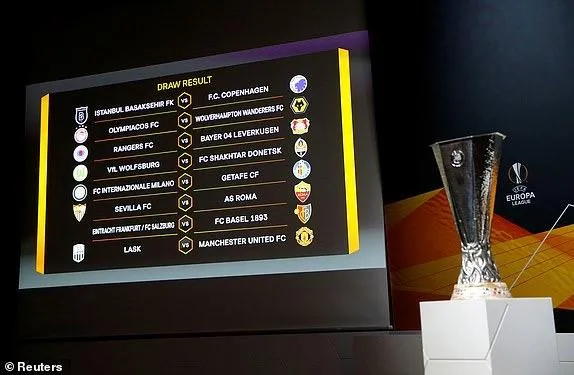 Buổi lễ bốc thăm với kết quả các cặp đấu như sau: İstanbul Başakşehir (Thổ Nhĩ Kỳ) - Copenhagen (Đan Mạch); Olympiacos (Hy Lạp) - Wolves (Anh); Rangers (Scotland) - Leverkusen (Đức); Wolfsburg (Đức) - Shakhtar Donetsk (Ukraine); Inter Milan (Ý) - Getafe (Tây Ban Nha); Sevilla (Tây Ban Nha) - AS Roma (Ý); Eintracht Frankfurt (Đức)/ Salzburg (Áo) - Basel (Thuỵ Sĩ); LASK (Áo) - Manchester United (Anh).