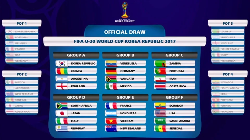 Kết quả bốc thăm chia bảng VCK U-20 thế giới: