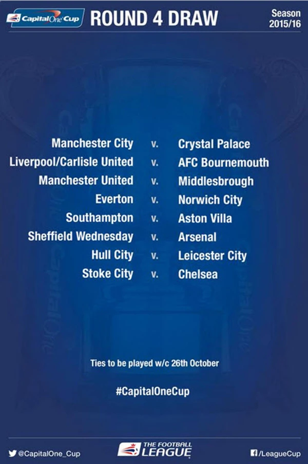 Các trận đấu vòng 4 Capital One Cup sẽ diễn ra vào ngày 26/10 tới.