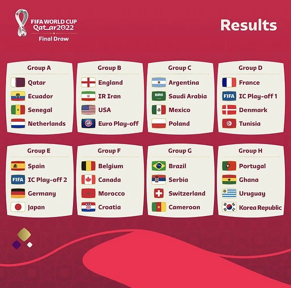 Kết quả bốc thăm 8 bảng đấu VCK World Cup 2022.
