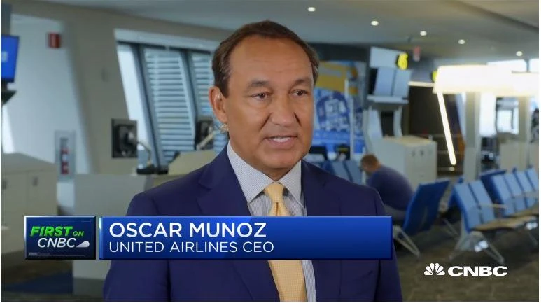Chủ tịch kiêm Giám đốc điều hành hãng hàng không United Airlines trả lời phỏng vấn kênh CNBC. Ảnh: CNBC