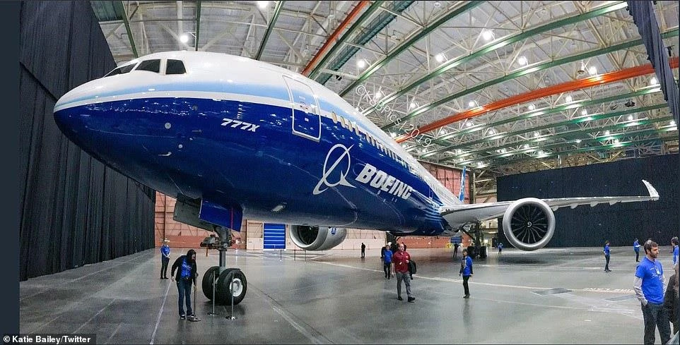 Một số hình ảnh lễ ra mắt dòng máy bay chở khách dài nhất thế giới 777X-9 của Boeing tại nhà máy ở Seattle, bang Washington (Mỹ), ngày 13-3 được đưa lên trang TWITTER: