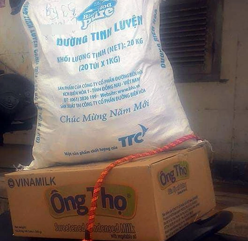 BS T. đã nhận một thùng sữa Ông Thọ 55 hộp và ba bao đường khoảng 60 kg. “Tuy nhiên, do tôi đã lớn tuổi, bị rối loạn chuyển hóa lại bị tiểu đường mà những hiện vật này thì không thể dùng được nên bán đổ bán tháo cũng được 12.000 đồng/kg đường, còn sữa thì mang biếu hàng xóm để lấy thảo” - BS T. chia sẻ.
