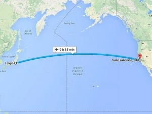 Máy bay thương mại tốn chín giờ 15 phút bay.