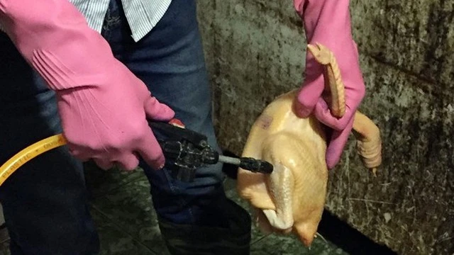 Nhiều người vì lợi nhuận mà bất chấp bơm nước và hóa chất vào gà. Ảnh: Internet