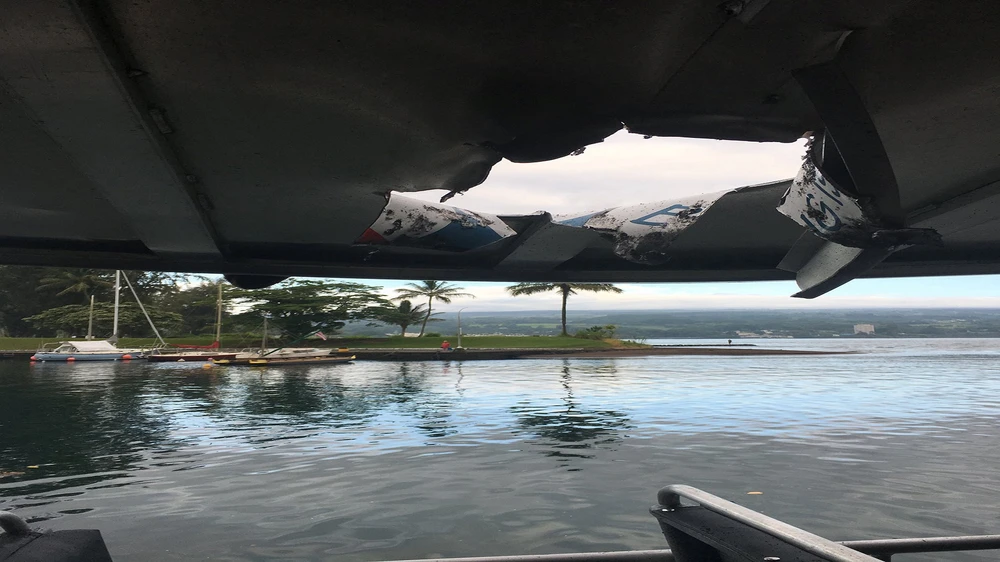Sở Cứu hỏa Hawaii hôm 16-7 cho biết một tàu du lịch bị bom nham thạch rơi trúng khi đang chở khách đi tham quan xung quanh khu vực núi lửa Kilauea tại Đảo Lớn ở Hawaii, Mỹ. Họ tới đây để chiêm ngưỡng dòng dung nham được hình thành sau vụ phun trào núi lửa hồi tháng 5, theo AFP.