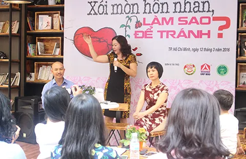 Chiều 12-3, tại đường sách Nguyễn Văn Bình (quận 1, TP.HCM), TS Nguyễn Thị Bích Hồng, giảng viên Trường ĐH Sư phạm TP.HCM, chủ trì tọa đàm Xói mòn hôn nhân, làm sao để tránh? Tọa đàm thu hút rất nhiều câu chuyện từ phía những người đã lập gia đình.
