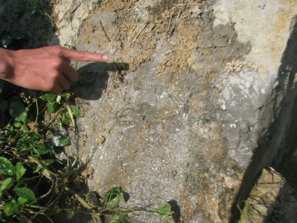 Vết tráng xi măng bất thường nhưng ngành chức năng nói vẫn đang tìm nguyên nhân. Ảnh: MINH KHANG