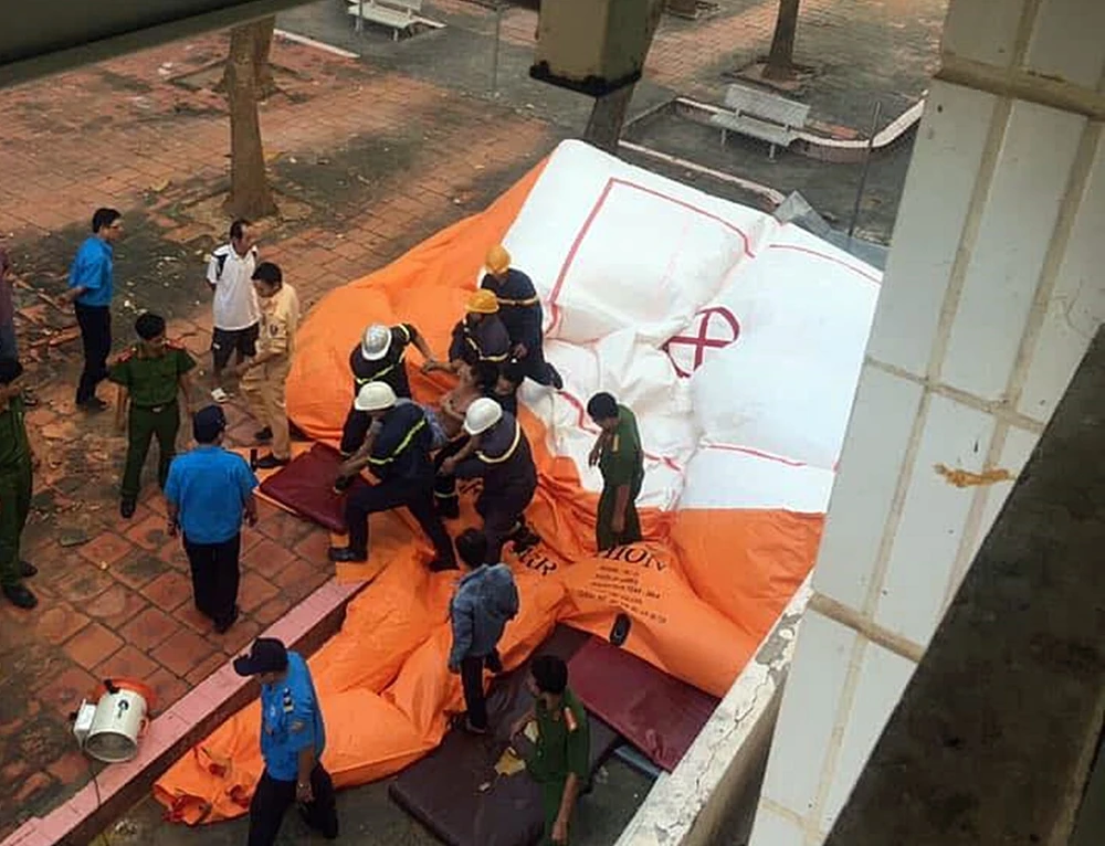 Nhiều y bác sĩ đã ném nệm xuống khu vực này đề phòng bệnh nhân nhảy xuống và gọi lực lượng cứu hộ chuyên nghiệp.