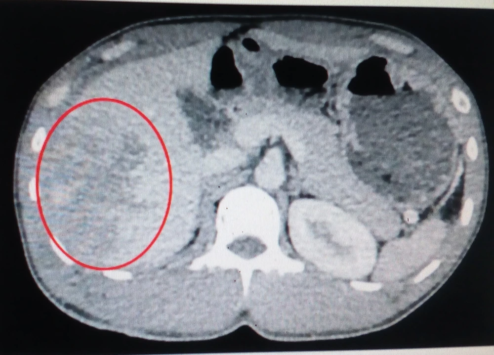 Kết quả chụp CT 160 lát cho thấy gan của anh T. bị vỡ nhiều đường phức tạp. Ảnh: LÊ PHỤNG