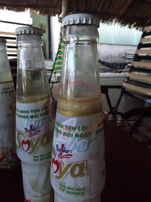 Theo quan sát bằng mắt thường của chúng tôi, trong 4 chai sữa này (loại chai sành, thể tích thực 240 ml) có 3 chai bị bợn cặn màu vàng sền sệt và đóng cặn dưới đáy chai, 1 chai không có nước và bị đóng cặn dưới đáy. Căn cứ theo ngày sản xuất và hạn dùng in trên 4 chai này cho thấy các sản phẩm vẫn chưa hết hạn dùng (1 chai hạn dùng đến 29-7-2015, một chai đến ngày 6-9-2015 và 2 chai đến ngày 24-10-2015).