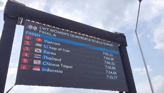 Với chiếc HCV của đội tuyển Rowing, đoàn thể thao Việt Nam đoạt tổng cộng 1 HCV; 4 HCB; 7 HCĐ (tính đến 13 giờ), nhảy vọt lên vị trí 13 bảng tổng sắp huy chương.