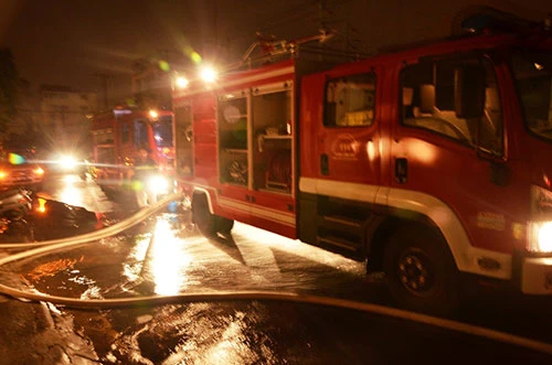 Nhận tin báo, PCCC quận 7, quận 4, quận 2 điều động xe nước chữa cháy chuyên nghiệp và lính cứu hỏa tới hiện trường. Cảnh sát phải tiến hành phá nhiều lớp cửa để kéo vòi rồng vào phun nước. Không lâu sau, đám cháy được khống chế.