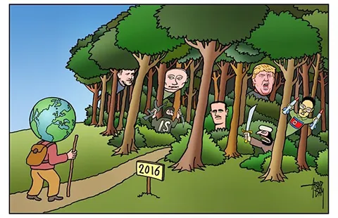 Thế giới bước vào năm 2016. Biếm họa của AREND VAN DAM (Hà Lan)