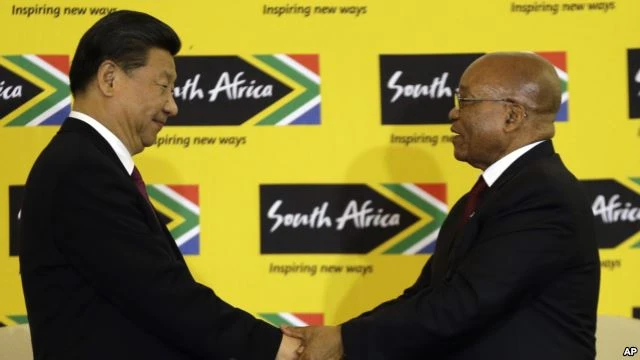 Tổng thống Nam Phi Jacob Zuma (phải) bắt tay với Chủ tịch Trung Quốc Tập Cận Bình sau cuộc họp báo chung tại Union Building ở Pretoria (Nam Phi) hôm 2-12-2015. (Ảnh: AP)