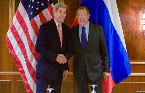 Sáng 23-10, Ngoại trưởng Mỹ John Kerry hội đàm với Ngoại trưởng Nga Sergey Lavrov tại Vienna. Ảnh: BỘ NGOẠI GIAO MỸ