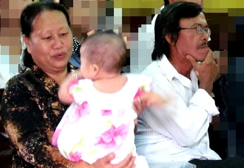 Ông Trí và vợ (đang bế con cho bị cáo) trong phiên toà năm 2010.