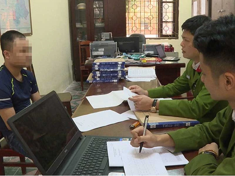 Công an huyện Yên Mỹ, Hưng Yên lấy lời khai nghi phạm trong một vụ án ma túy. Ảnh minh họa: TP