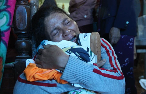 “Con ơi, sao con không dậy đi học, sao con cứ ngủ hoài vậy con ơi. Mẹ đứt hết ruột gan rồi con có biết hay không”. Bà Võ Thị Minh (thôn 6, xã Tiên Cảnh, huyện Tiên Phước, Quảng Nam) - mẹ của nam sinh Nguyễn Văn Tín (11 tuổi) khóc khô nước mắt sau khi đưa xác con trai tử nạn trở về nhà.