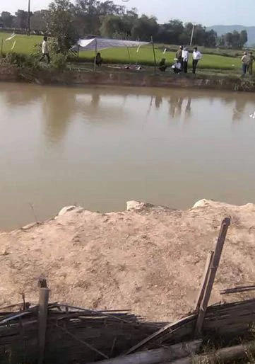 Hiện trường nơi hai em Lê Văn Tuấn và Nguyễn Văn Hà bị đuối nước chết.Ảnh: CTV