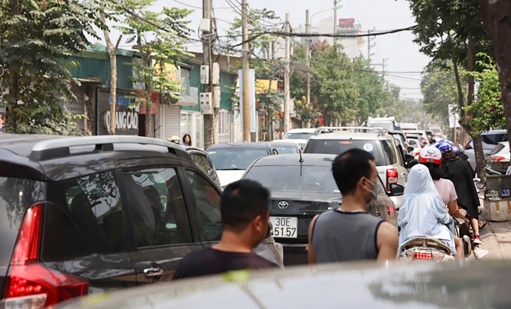 Khu vực vườn nhãn, bên bãi sông Hồng thì rộng rãi, phù hợp cho hoạt động khinh khí cầu. Nhưng lối vào thì chật hẹp, nên có dịp đông người qua lại như thế này là ùn tắc kéo dài.
