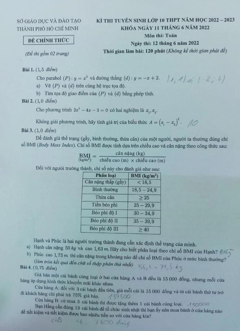 (PLO)- Các thí sinh vừa hoàn tất 120 phút thời gian làm bài môn Toán kỳ thi tuyển sinh tại vào lớp 10 tại TP.HCM.