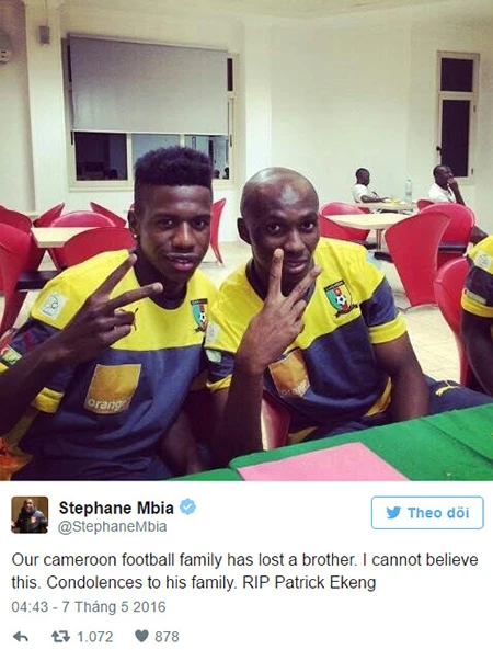 Stephane Mbia, cựu tiền vệ Queens Park Rangers đã đăng một bức ảnh của hai người trên Twitter và gửi 'lời chia buồn tới gia đình của Ekeng.'