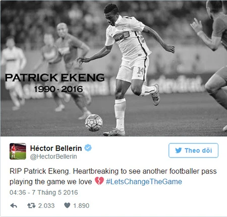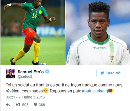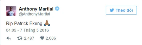 Hai ngôi sao ở Premier League là Anthony Martial ( Manchester United), Arsenalvà Hector Bellerin (Arsenal) hay tiền đạo Samuel Eto'o cũng rất sốc trước thông tin trên và gửi lời chia buồn đến gia đình Ekeng.