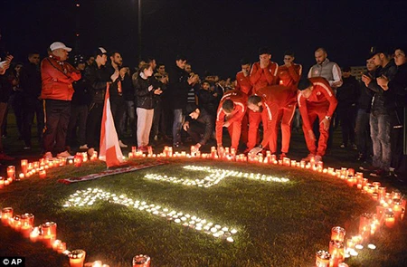Cầu thủ Dinamo Bucharest thắp nến cùng với các CĐV của đội sau cái chết của Ekeng.