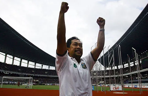 HLV Aji Santoso phấn khích với chiến thắng của U-23 Indonesia. Ảnh: JAKARTA POST