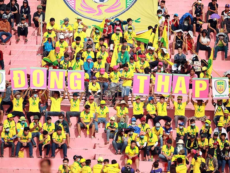 Đồng Tháp, CLB duy nhất bán được áo của CLB cho người hâm mộ nhưng cũng là đội phải xuống hạng. Ảnh: XUÂN HUY
