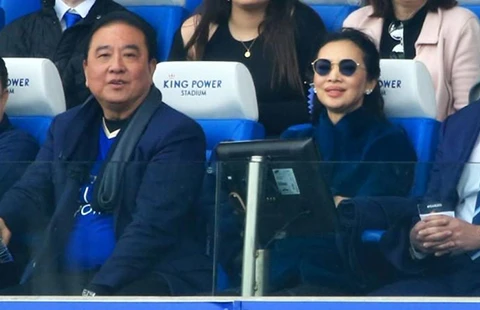 Supornthip Tippy cùng tỉ phú Vichai trên sân King Power.