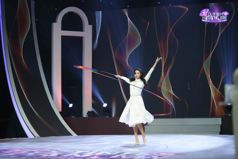 Nhung Yoona mang đến sân khấu màn múa nghệ thuật kết hợp với dải lụa ruy băng.