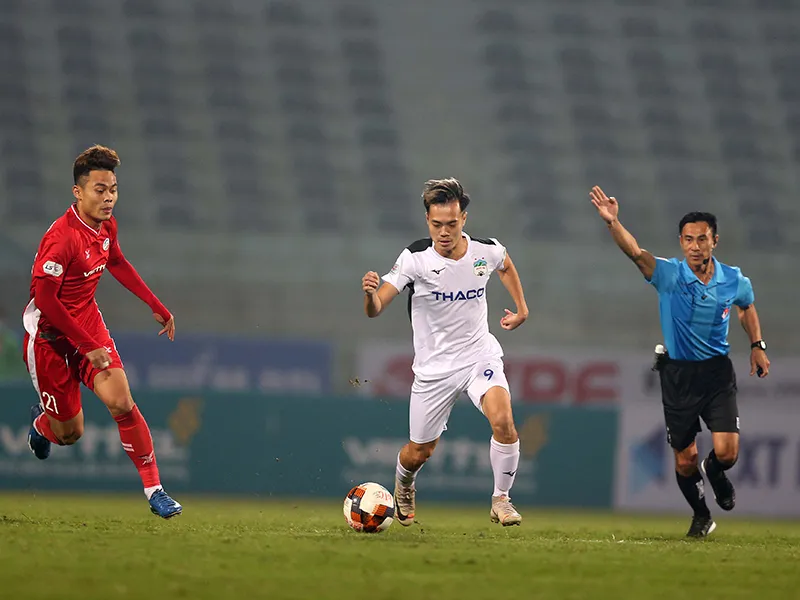 Lượt 2 V-League tiếp tục không khán giả nhưng cầu thủ trẻ hai đội Viettel - HA Gia Lai vẫn cống hiến. Ảnh: NGỌC DUNG