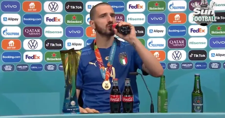 Không biết Bonuccini có được 'chỉ đạo' để cứu nhà tài trợ không nhưng hình ảnh trên của anh đã giúp ban tổ chức cứu lại tất cả những xấu xí mà Ronaldo và Pogba từng gây bão bởi 'chê' và từ chối hai thức uống trên.
