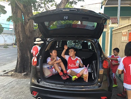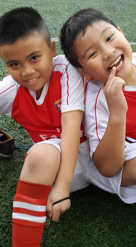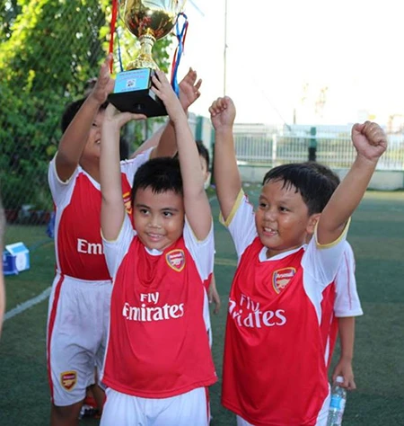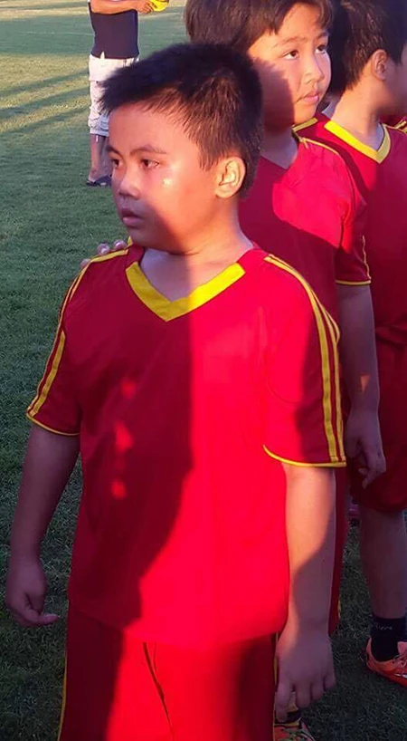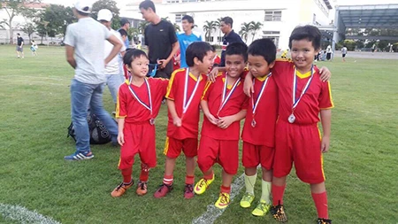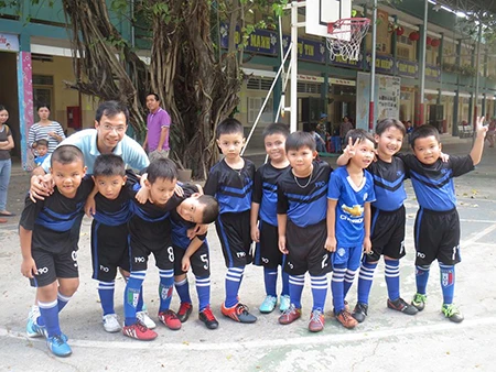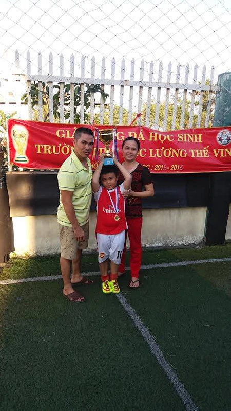 Năm học lớp 1, Phúc Ân và đồng đội đăng quang giải bóng đá của trường… và tiếp tục là chiếc cúp của năm lớp 2 cùng với ba mẹ.