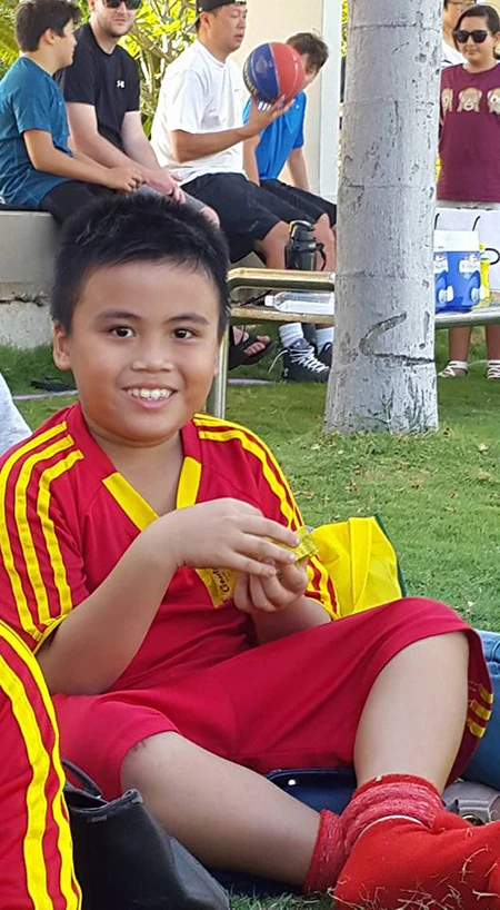 Anh Nguyễn Hoài Thịnh - ba của Phúc Ân mê tập… thể hình hơn đá bóng. Nhưng anh luôn ủng hộ con trai chơi bóng đá. Bất kể giải đấu của Trường Lương Thế Vinh, anh đều lặn lội chở con đến sân.