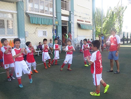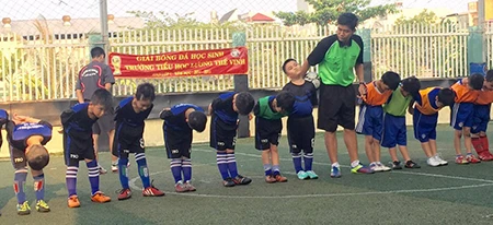 Ngày 23-4, sau 3 giờ miệt mài trên sân bóng Nam Sài Gòn với 60 cầu thủ nhí, một HLV của Borussia Dortmund bất ngờ gọi riêng một cậu bé 8 tuổi ra chơi trò tâng bóng với mình và quay lại clip đăng trên trang chủ của CLB.