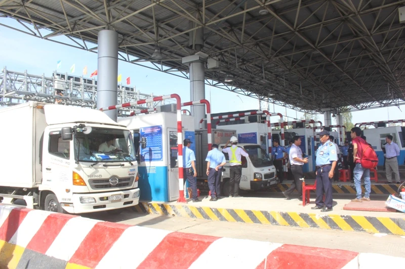 BOT Cai Lậy bắt đầu thu phí trở lại sau khi xả trạm 1 tiếng. (Ảnh: ĐÔNG HÀ)