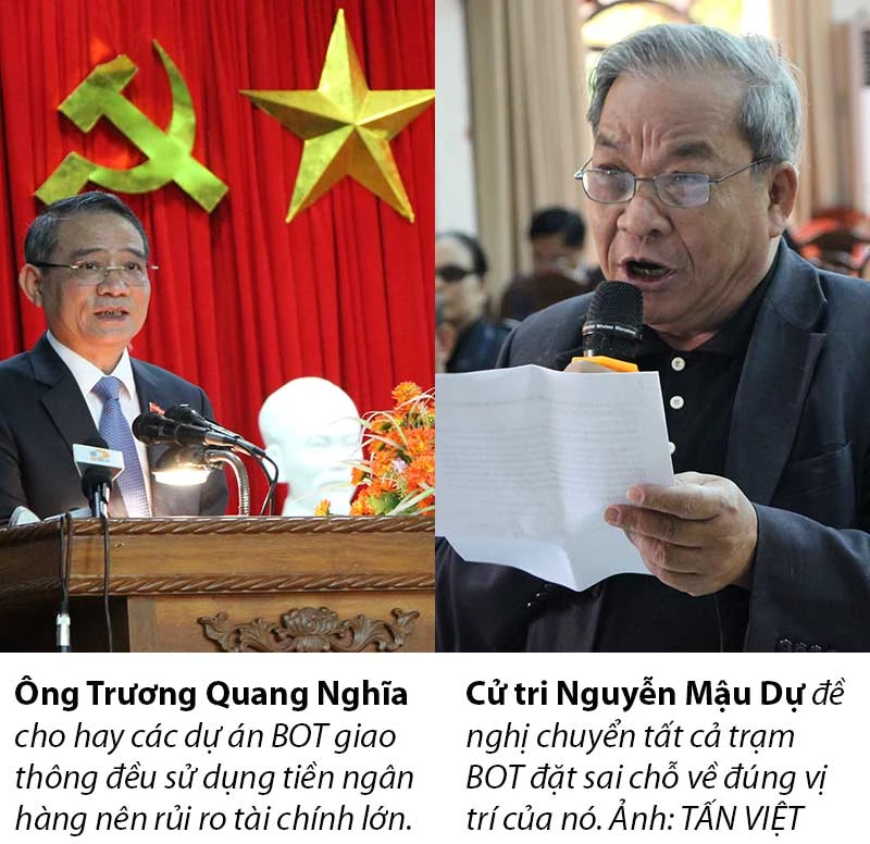 “Tình hình các trạm BOT không được giải quyết rốt ráo. Đề nghị Quốc hội (QH) cho thanh tra, kiểm tra toàn bộ các dự án BOT và trả lời có hay không có lợi ích nhóm. Đề nghị chuyển tất cả trạm BOT đặt sai chỗ về đúng vị trí” - cử tri Nguyễn Mậu Dự (phường An Hải Đông) lên tiếng tại hội nghị.
