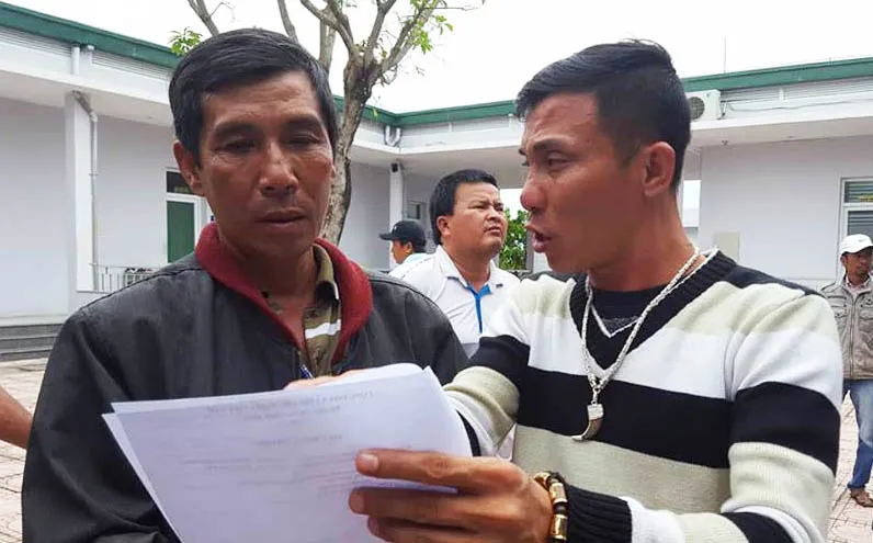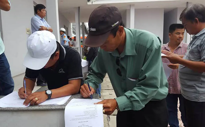 Các tài xế ký biên bản làm việc. Ảnh: TẤN LỘC