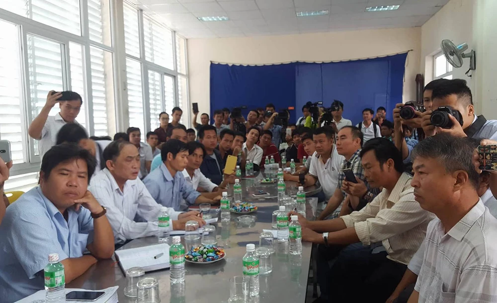 Hơn 100 chủ doanh nghiệp, lái xe tham gia đối thoại với chủ đầu tư BOT Ninh An. Ảnh: TẤN LỘC