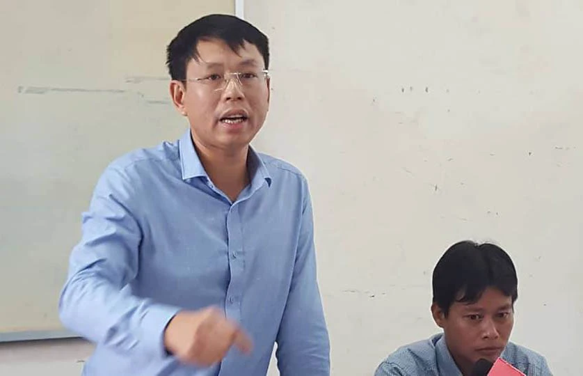 Ông Trần Phúc Tự, Tổng giám đốc Công ty CP BOT Đèo Cả Khánh Hòa, giải đáp các vấn đề liên quan đến dự án do các tài xế yêu cầu. Ảnh: TẤN LỘC
