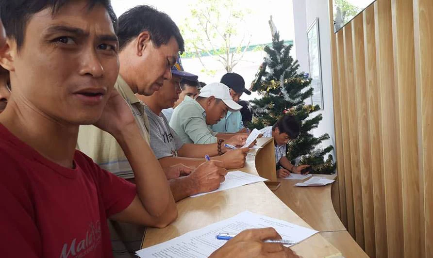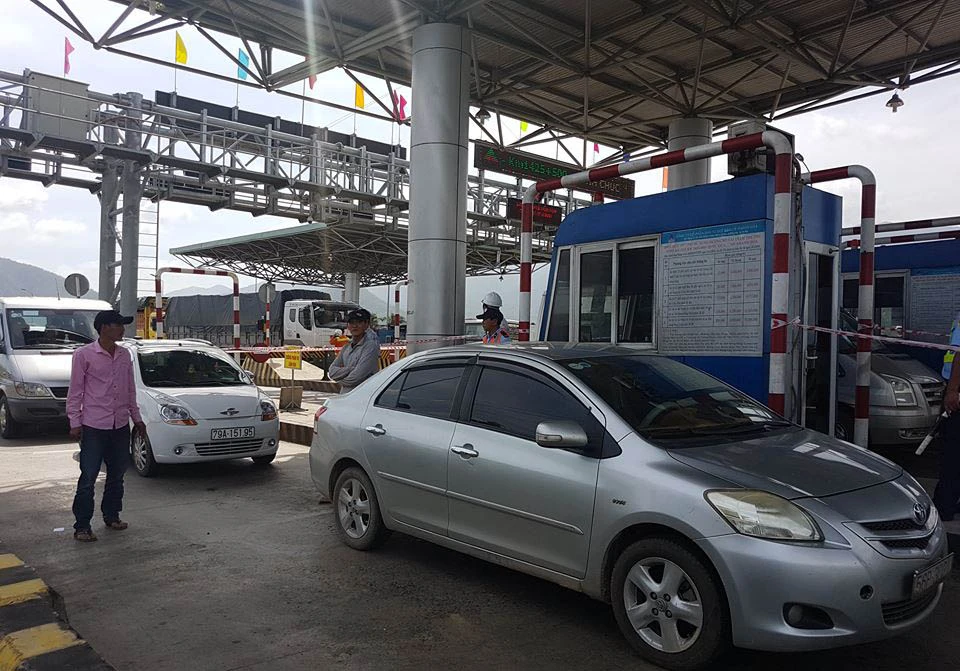 Các chủ phương tiện đang làm thủ tục để miễn phí qua tram.